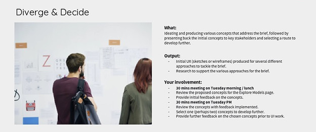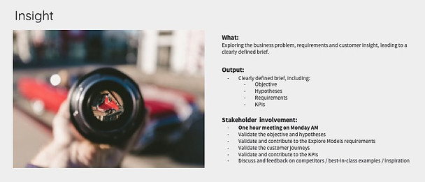 Product, UX and Design (PXD) worked with Audi Germany to define a process that would facilitate stakeholder and customer input at a high-level concept stage. The output would be shared with stakeholders and customers to get feedback and alignment on an approach before progressing to a developed solution. This approach ensured that customers and domain experts globally had input at a very early stage.